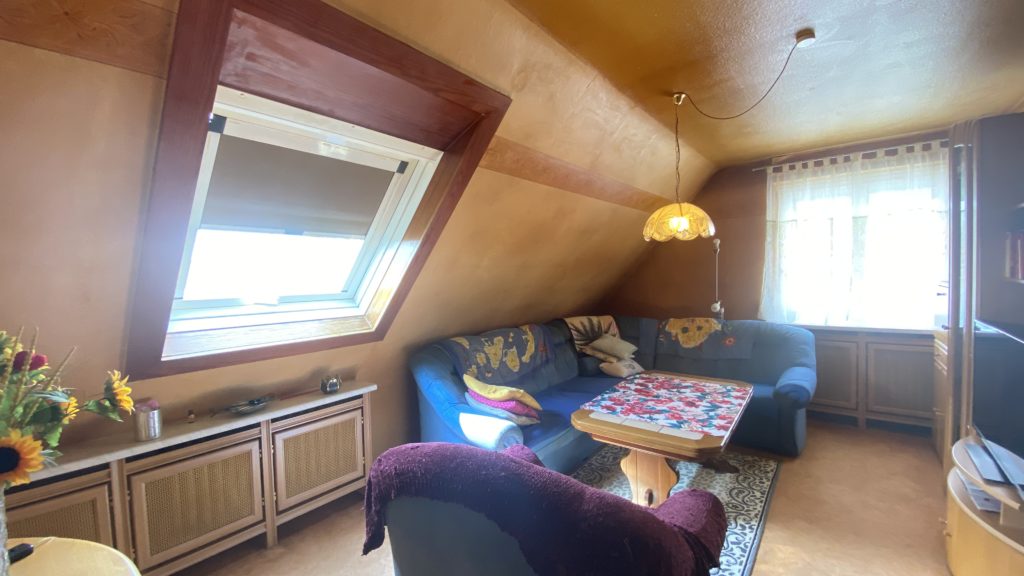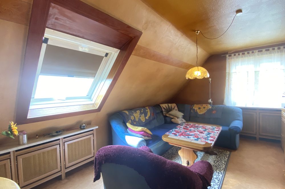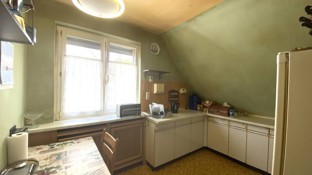 Auf ca. 105,93 m² Wohnfläche verteilen sich insgesamt 5 Zimmer auf zwei Etagen. Im Erdgeschoss erwartet Sie eine teilsanierte Wohnung mit modernisiertem Tageslichtbad, separatem Gäste-WC, Küche inklusive Einbauküche sowie hellen Wohnräumen. Die Wohnung im Dachgeschoss verfügt über weitere Zimmer, eine zweite Küche sowie ein sanierungsbedürftiges Badezimmer – ideal für individuelle Ausbauwünsche.