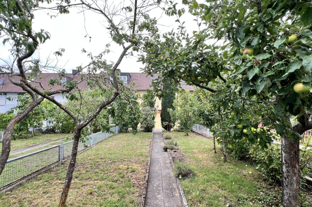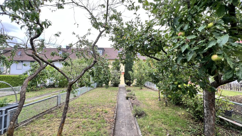 • pflegeleicht angelegter Garten mit Apfel- und Pfirsichbaum