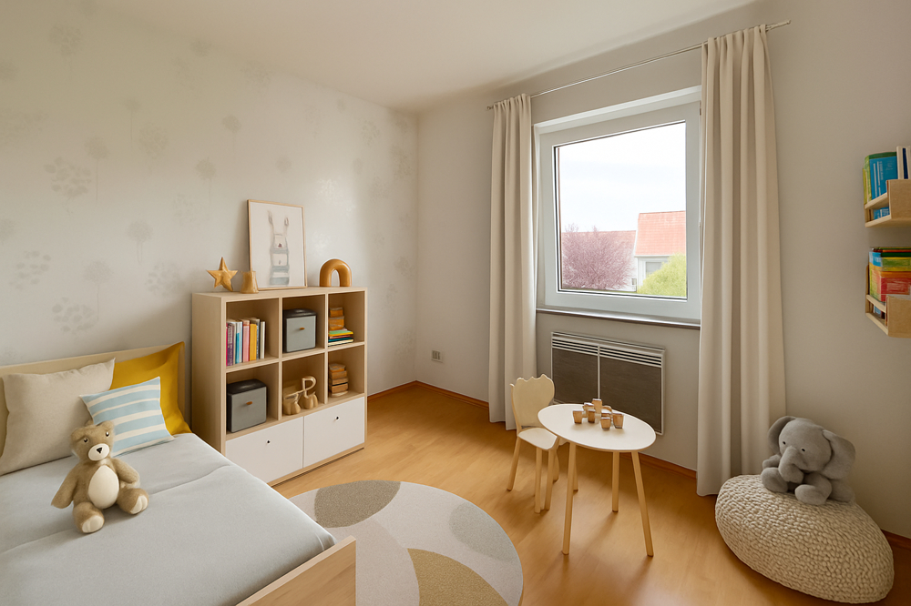 Besonders attraktiv sind die Außenbereiche: Eine Terrasse mit Markise im Erdgeschoss sowie ein kleiner Balkon im Obergeschoss laden zum Entspannen im Freien ein. Der kleine Gartenbereich eignet sich ideal für Kinder, Pflanzenliebhaber oder gemütliche Grillabende.
