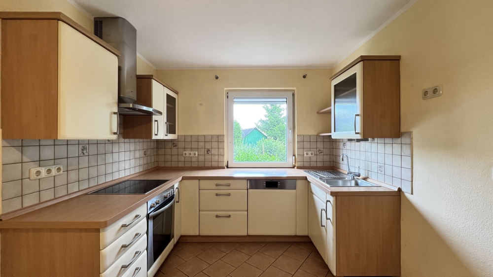 Das Haus verfügt über insgesamt 4 gut geschnittene Zimmer, ein modernisiertes Tageslichtbad mit bodengleicher Dusche sowie ein Gäste-WC. Die im Kaufpreis enthaltene Einbauküche bietet alles, was das Herz von Hobbyköch:innen begehrt.
